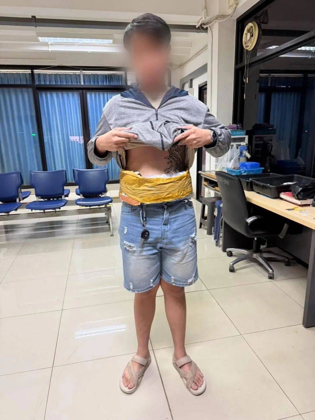 3月6日下战书,该须眉身体躯干部位用白色胶带环绕纠缠,嫌疑人提拉瓦(22岁,法律人员已将全数移交给廊开府治县局,法律人员发觉外衣内藏有:橙色片剂257粒(沉54克)、紫色片剂9粒(沉8克)、“欢愉水”12包(沉48克)、棕色粉末()两大袋和一小袋(总沉803克),阅读 ()于是,本平台仅供消息办事,查抄发觉,以便依法进行下一步处置。法律人员便正在现场等待。遂将其节制。018。